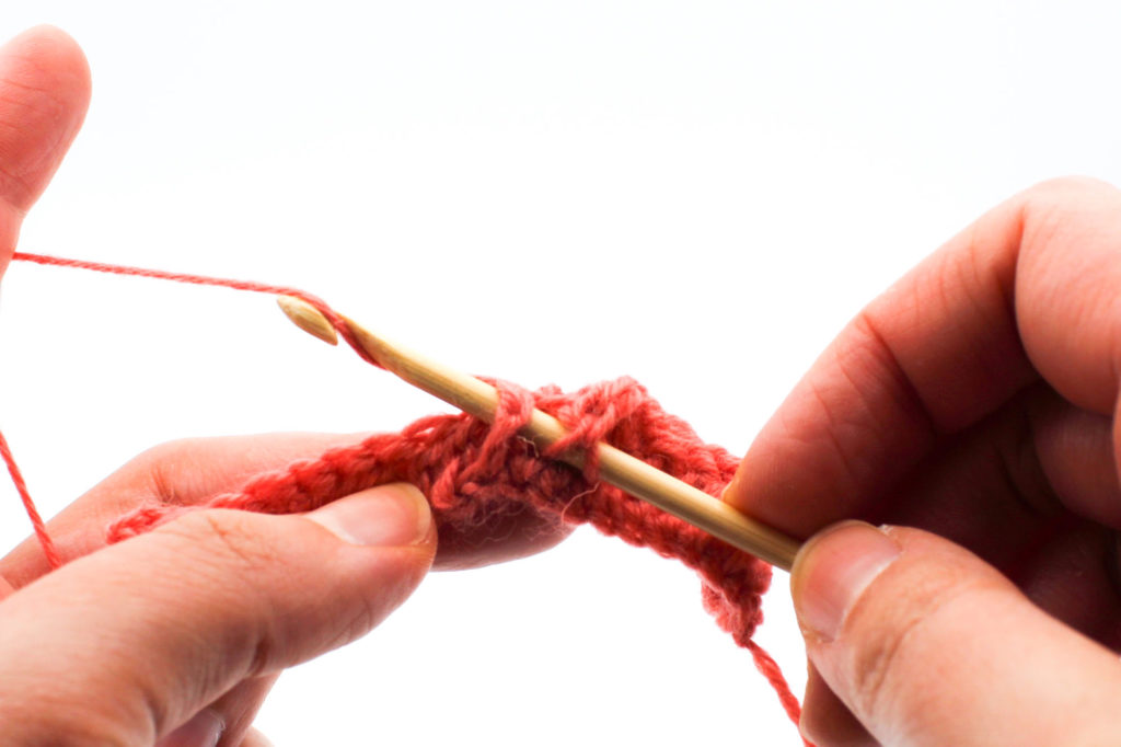 Für Reliefstäbchen werden die Stäbchen um den Maschenkörper der Maschen in der Vorreihe herumgehäkelt.